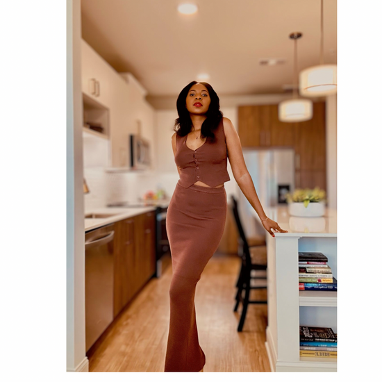 Maxi Skirt And Vest Sweater Set